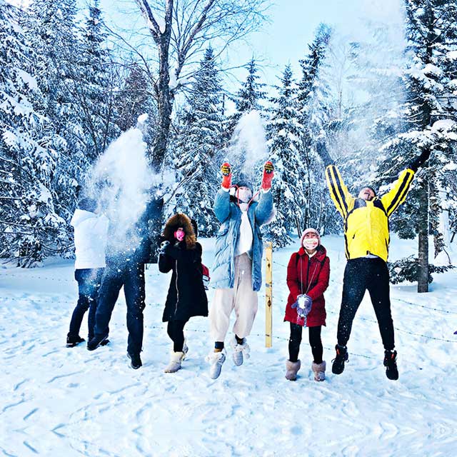 我们当时是哈尔滨+雪乡+亚布力的5天高品质线路,整个团都不到12个人,是个mini小团。全程有10多种特色玩法,雪橇,雪地温泉,泼水成冰、篝火晚会、雪山飞碟、雪地摩托……超好玩!